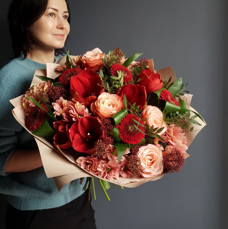 Просим обратить внимание на то, что мы не можем гарантировать 100% копию букета, так как мы используем только свежие и сезонные цветы, доступные на момент сборки. Мы стараемся сохранить цветовую гамму и настроение букета, соберем букет с любовью и вниманием к деталям.