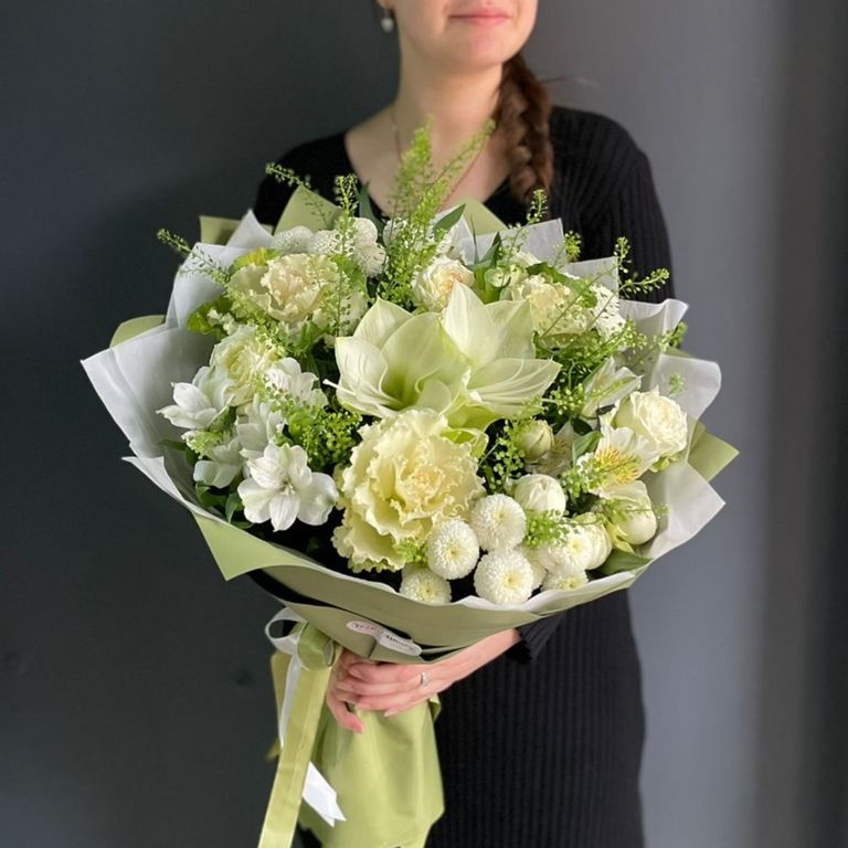 Просим обратить внимание на то, что мы не можем гарантировать 100% копию букета, так как мы ежедневно получаем цветы с разных уголков мира, они имеют свойство отличаться. Мы обязательно постараемся сохранить настроение и стиль букета. Также возможно собрать букет по Вашим предпочтениям. Актуальную информацию можно уточнить у менеджера.