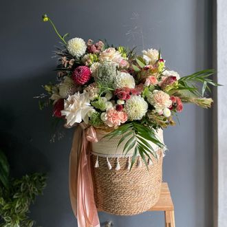 Просим обратить внимание на то, что мы не можем гарантировать 100% копию композиции, так как мы используем только свежие и сезонные цветы, доступные на момент сборки. Мы стараемся сохранить цветовую гамму и настроение композиции, соберем с любовью и вниманием к деталям.