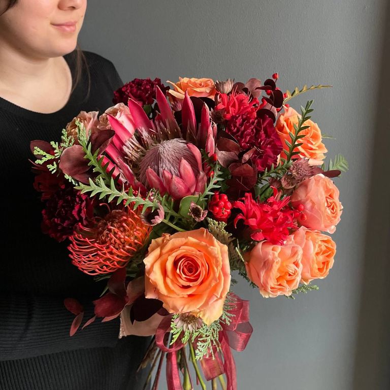 Просим обратить внимание на то, что мы не можем гарантировать 100% копию букета, так как мы используем только свежие и сезонные цветы, доступные на момент сборки. Мы стараемся сохранить цветовую гамму и настроение букета, соберем букет с любовью и вниманием к деталям.