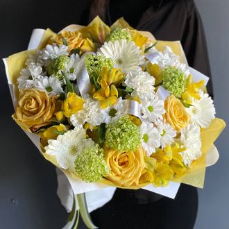 Просим обратить внимание на то, что мы не можем гарантировать 100% копию букета, так как мы ежедневно получаем цветы с разных уголков мира, они имеют свойство отличаться. Мы обязательно постараемся сохранить настроение и стиль букета. Также возможно собрать букет по Вашим предпочтениям. Актуальную информацию можно уточнить у менеджера.