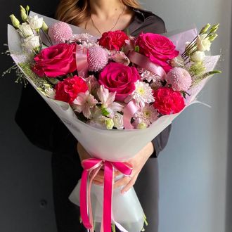 Просим обратить внимание на то, что мы не можем гарантировать 100% копию букета, так как мы ежедневно получаем цветы с разных уголков мира, они имеют свойство отличаться. Мы обязательно постараемся сохранить настроение и стиль букета. Также возможно собрать букет по Вашим предпочтениям. Актуальную информацию можно уточнить у менеджера.