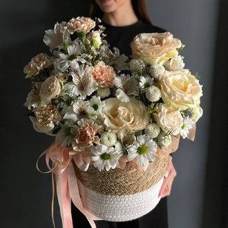Просим обратить внимание на то, что мы не можем гарантировать 100% копию композиции, так как мы используем только свежие и сезонные цветы, доступные на момент сборки. Мы стараемся сохранить цветовую гамму и настроение композиции, соберем с любовью и вниманием к деталям.